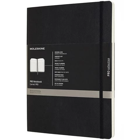 Versatile and practical, the Pro Notebook by Moleskine is designed to increase productivity and efficiency. Its structured pages focus your thoughts on individual and group goals, while numbered pages and a contents list help keep track of your notes and progress. The Pro Notebook features space for project and travel planning – so you stay ahead of every deadline.